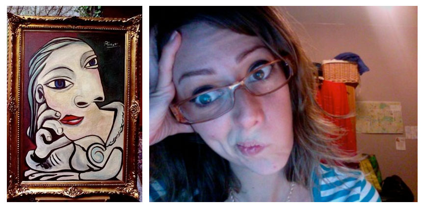 Tete de Femme by Picasso and Me working on my Masters Degree last year.