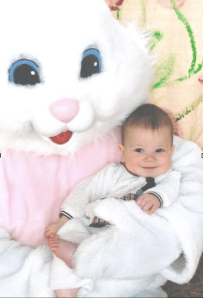 She approached me, or as she knew me, the Easter Bunny with a friendly “How are you?” She stood by the photographer and cooed to get her child to smile and look the right way.