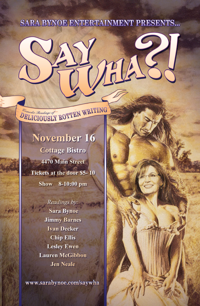 If you haven’t been yet, this is a great one to catch. Two newbys (Jimmy Barnes and Lesley Ewen) two pros (Chip Ellis and Lauren McGibbon), two second timers (Ivan Decker and Jen Neale) and myself will be reading. I’m also hoping to get all you working-folk home at a decent hour and end the show before 10pm. You can either go home early or we can have some mingling time after all the bad books have been laughed at – stay for the mingling!