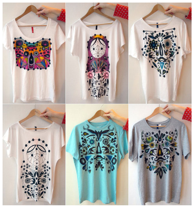 A – Mostly through http://store.ladeclothing.com which is the Japanese site that sells some of my printed work. While if you are after an original handpainted shirt you can contact me through my www.sasadesign.com site. My biggest problem at the moment is getting the right fit shirts and the right material, so I am in the process of finding the right production and hope soon will have this sorted out. I also work with people sending me their shirts, hence the whole thing turning out a lot cheaper.
