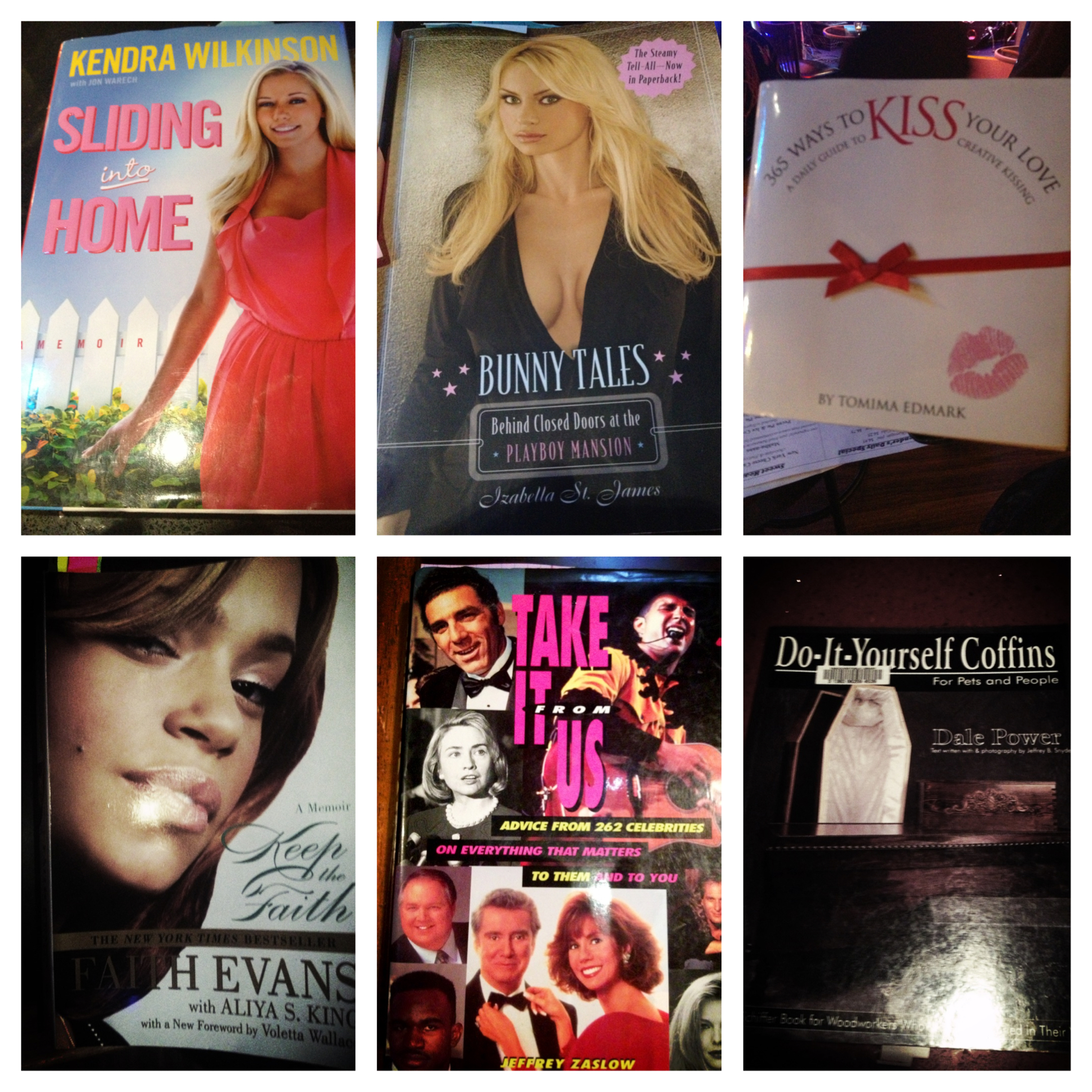 I shared two books that have been on my Say Wha?! book shelf for ages now. Stories from the Playboy Mansion about how disgusting the carpets are and how Hugh Hefner makes his girlfriends ask for their $1000/week allowance. Sliding into Home and Bunny Tales.