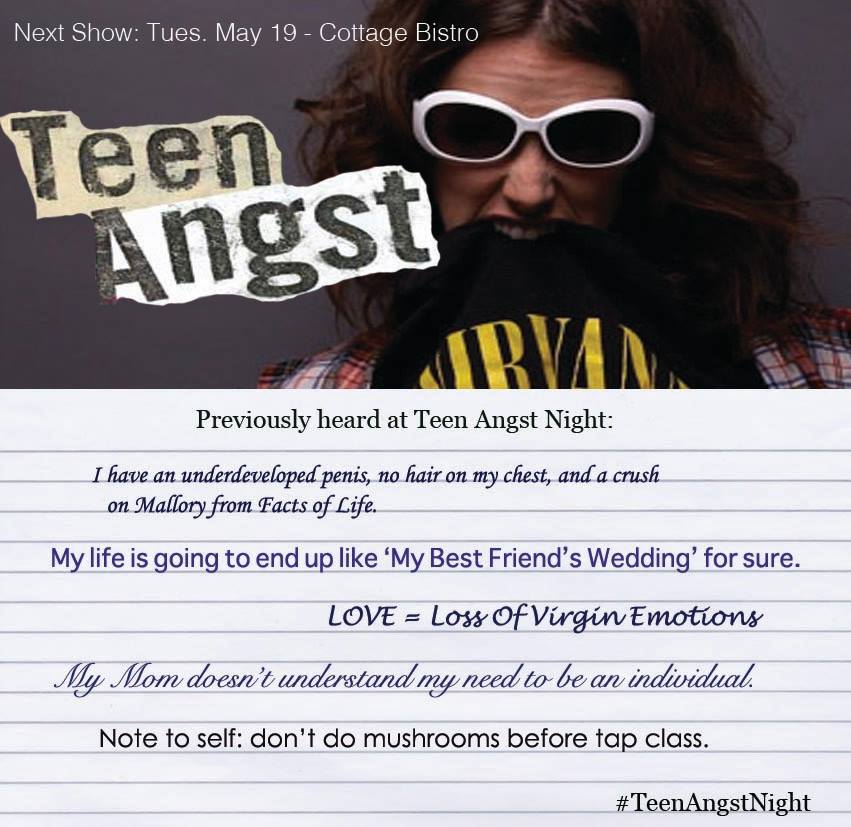 Next Tuesday is Teen Angst Night. Awesome, right? That’s what you’re thinking if you’ve been before.
